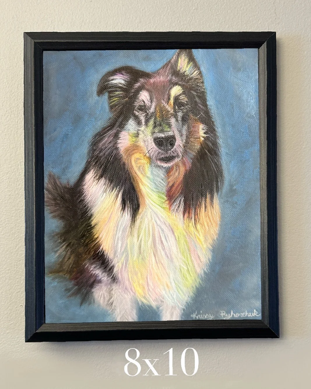 These hand produced greeting cards are printed replicas of original oil paintings by Canadian artist, Krissy Ryhorchuk. Cards are blank inside, and have a small, subtle stamp indicating the painting's title on the backside. Your card, together with an A6 sized, white envelope will be individually sealed in a transparent sleeve. Great for any occasion… a birthday gift, a thank you card, or a special note to a friend or family member. It's a perfect gift for any dog or animal lover.
