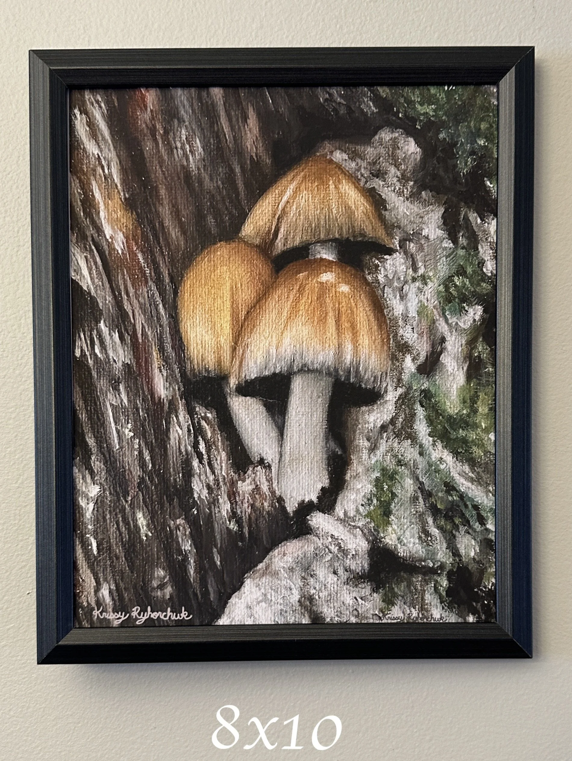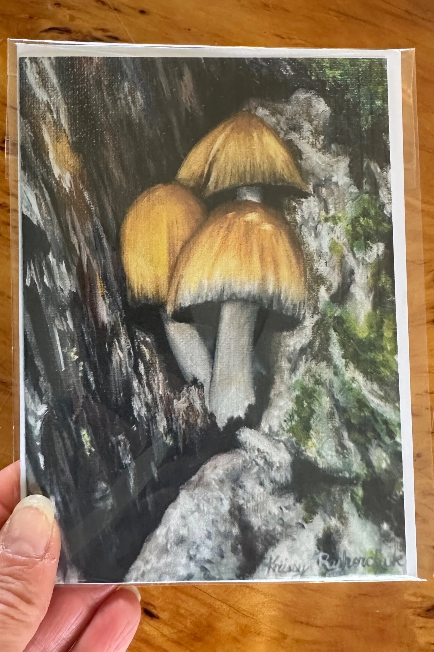 These hand produced greeting cards are printed replicas of original oil paintings by Canadian artist, Krissy Ryhorchuk. Cards are blank inside, and have a small, subtle stamp indicating the painting's title on the backside. Your card, together with an A6 sized, white envelope will be individually sealed in a transparent sleeve. Great for any occasion… a birthday gift, a thank you card, or a special note to a friend or family member. It's a perfect gift for any nature lover or mushroom fan.