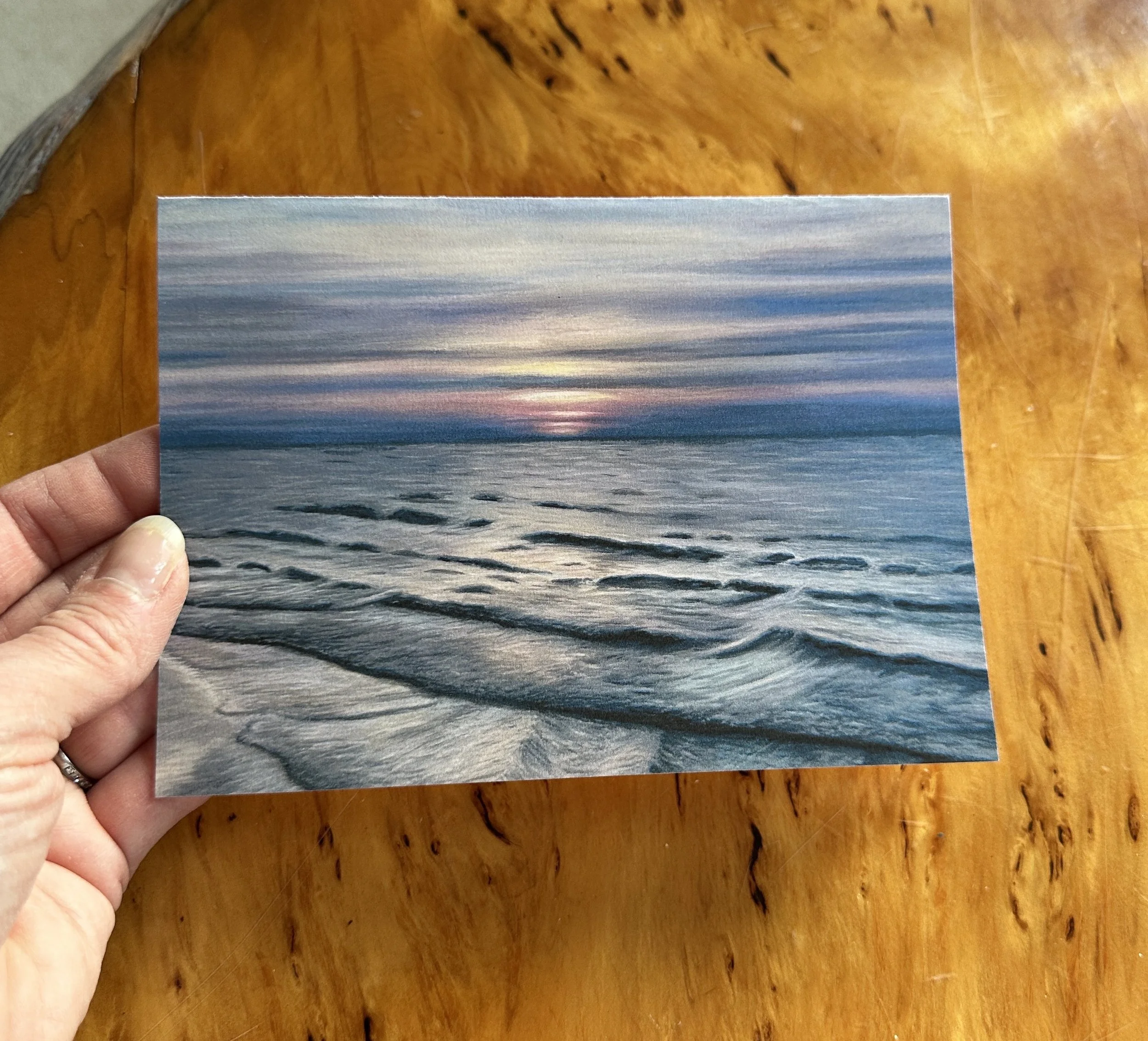 4x5” Art Cards printed on 65 lb cardstock. Each comes with its own envelope.
