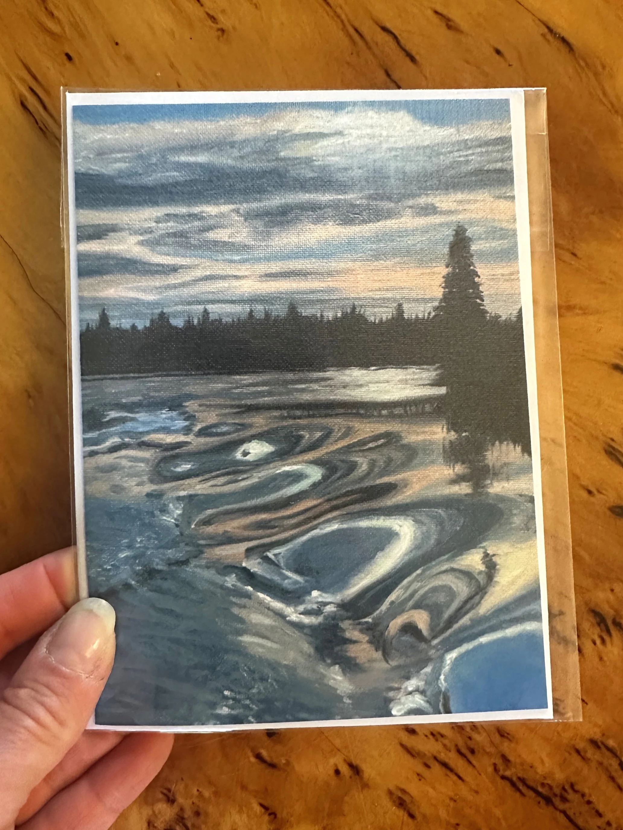 These hand produced greeting cards are printed replicas of original oil paintings by Canadian artist, Krissy Ryhorchuk. Cards are blank inside, and have a small, subtle stamp indicating the painting's title on the backside. Your card, together with an A6 sized, white envelope will be individually sealed in a transparent sleeve. Great for any occasion… a birthday gift, a thank you card, or a special note to a friend or family member. It's a perfect gift for any nature lover or lake lover.